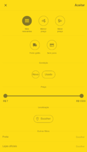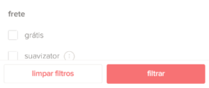 No caso do Mercado Livre, os filtros mudam também quando entramos em alguma categoria específica. Por exemplo, se estamos na categoria de roupas, surge no filtro a possibilidade de filtro por gênero, tamanho, cor, etc.
