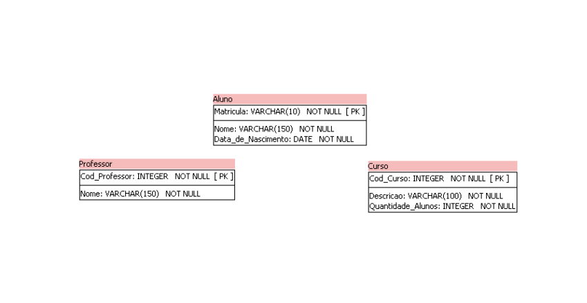Agora vamos praticar! Para isso, pense num cenário fictício em que fomos contratados por uma instituição, e a mesma, precisa ter um sistema para controle de cursos, sabemos que precisamos ter informações dos alunos, dos cursos e de professores.